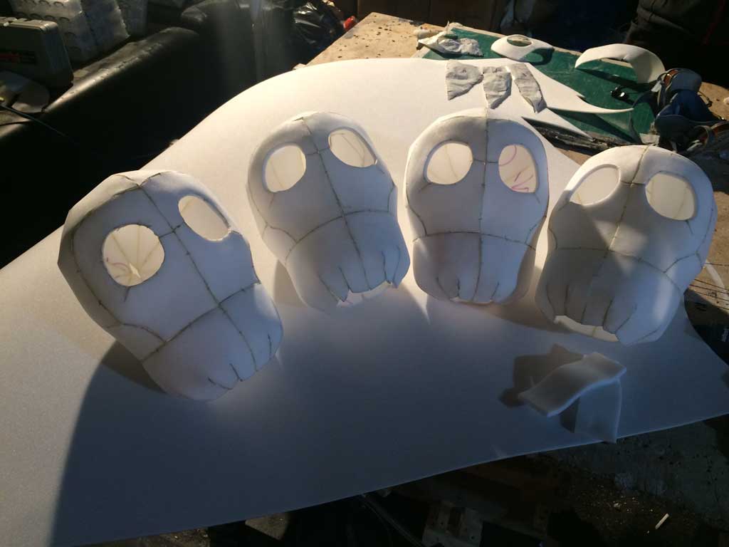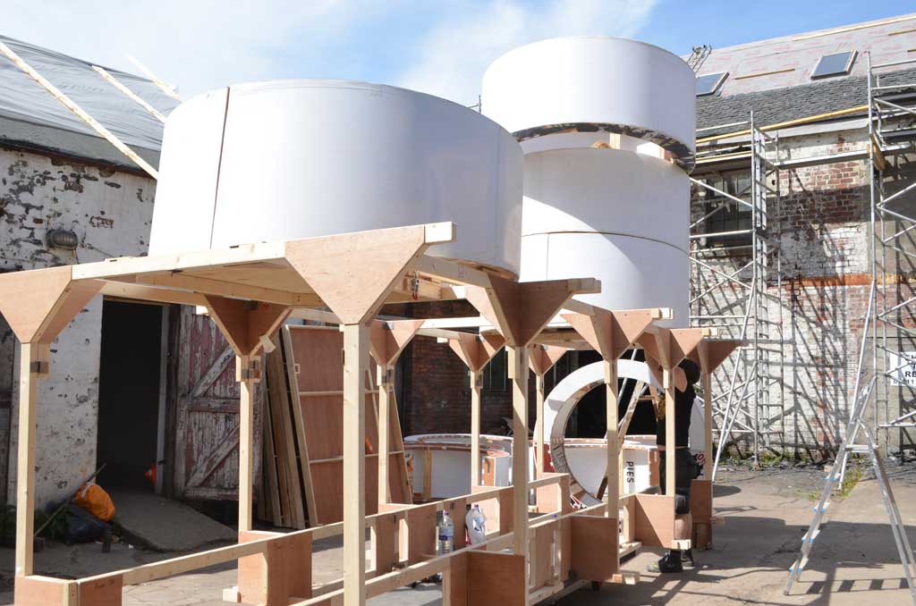 Our props, puppets and sets take months to make and this requires planning and commitment from all involved. We don’t have large studio warehouses where we can make everything so we work wherever we can find suitable space and we strike up beneficial relationships with people who have unused space in the areas in which we work. The half-finished large items in the images below were all made with the generous support of people who allowed us to use their spaces under favourable terms and conditions. This is possible because of the shared belief that we are doing something that is good for individuals, communities and society as a whole. Public art, and the sharing of it makes our lived spaces more meaningful places to inhabit.