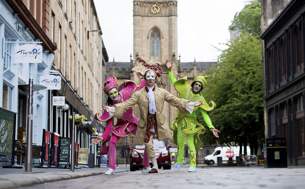 17.00 - THE PARTY LAUNCH STARTS AT THE BRUNSWICK STREET BRONDOLA STAGE We will be hosting Glasgow’s first Carnival Street Take-over to launch this year’s Merchant City Festival. It is a free party that is open to everyone so feel free to dress up and add some colour to the party. There will be hundreds of people in costume, large carnival artworks, musicians, stilt-walkers and other street performers.