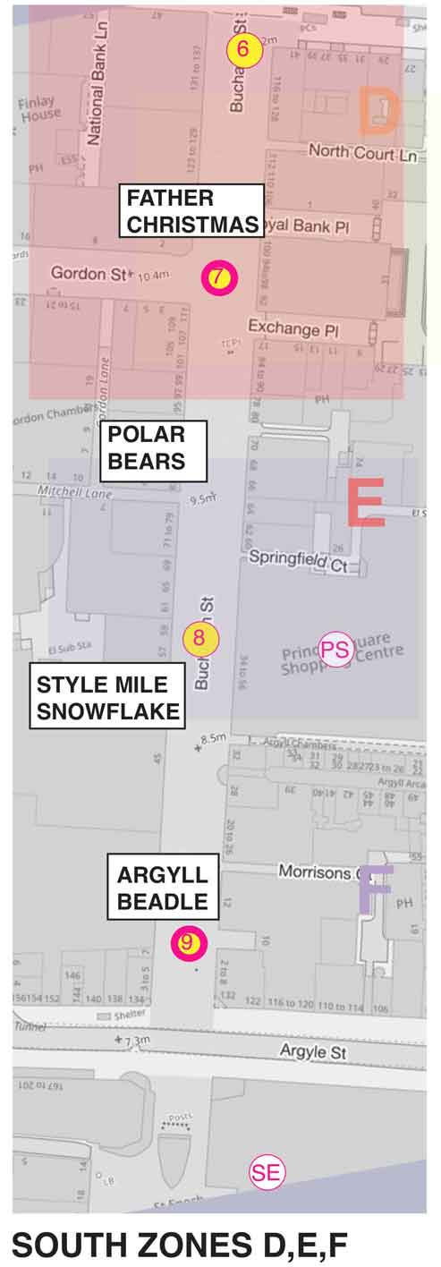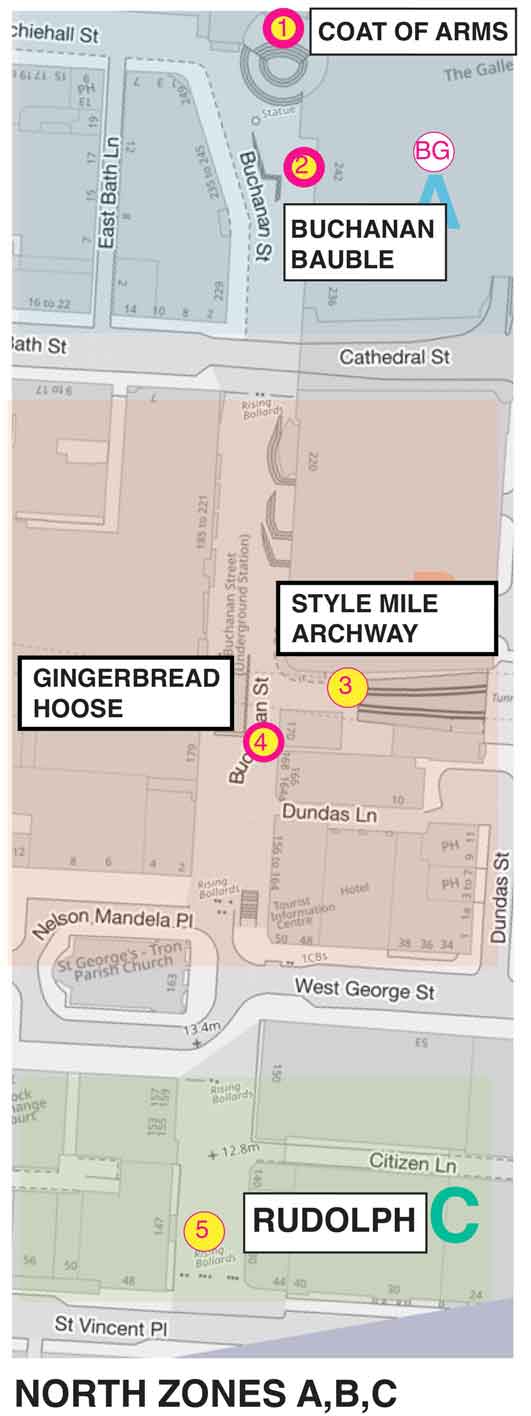 MAP OF THE STYLE MILE PERFORMANCE ZONES AND PLACES TO FIND OUR ARTWORKS ALONG BUCHANAN STREET